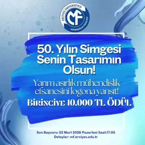 25 Mayıs 1976 tarihli Resmî Gazete kararı ile kurulan Erciyes Üniversitesi Mühendislik Fakültesi’nin tarihini, başarılarını ve önemli kilometre taşlarını vurgulamak; 50 yıllık gelişim öyküsünü bir logo ile belgelemek amacıyla 50. Yıl Logo Yarışması düzenlenecektir. 50. Yıl Logosu ile Fakültemizin misyonu, vizyonu, tarihsel gelişimi, eğitim-öğretime kattığı değer, son dönemde büyük ivme kazanan Ar-Ge çalışmaları ve öğrenci odaklı eğitim anlayışının yansıtılması amaçlanmaktadır. Fakültemizin 50. yılını temsil edecek logo; 2026 yılında düzenlenecek her türlü etkinlik, duyuru, ders notu, sınav, basılı materyal ve dijital ortamda kullanılacaktır.